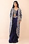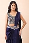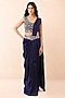 Indigo Dupion Silk & Crinkle Hand Embroidered Jacket Draped Saree Set