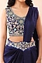 Featuring an indigo draped saree in dupion silk and crinkle base with dori thread, sequins, pearl and dabka hand embroidery. It is paired with a cobalt embroidered jacket, a blouse and a belt. Accentuate it with statement silver or oxidised earrings and a sleek low bun for a refined ensemble, ideal for sangeet ceremonies, cocktail evenings or wedding receptions.