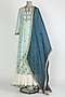 Featuring a sky blue kurta in georgette base with embroidery. It is paired with contrasting white palazzo pants and a dupatta.