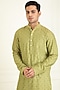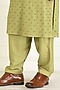 Featuring a mehendi green kurta in cotton base with thread and beads embroidery. It is paired with matching cotton silk salwar pants.