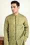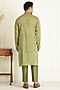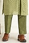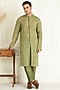 Featuring an olive green front open kurta in cotton base with lace and self jacquard details. It is paired with matching silk pants.