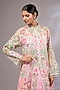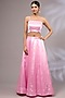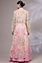 Featuring a baby pink jacket in pure silk organza base with hand paint and hand embroidery. It is paired with a crop top and silk lehenga. Accentuate statement jewellery and heels for an engagement or wedding ceremony.