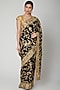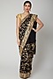 Featuring a black handcrafted parsi gara saree in silk georgette base with golden hand embroidery. It is paired with a matching unstitched blouse.