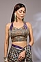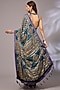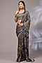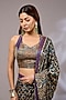 Featuring a black saree in modal silk base with ajrakh hand block print and hand embroidery. It is paired with an ajrakh printed unstitched blouse piece. Style it with statement earrings and block heels, perfect for festive occasions or weddings.