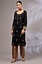 Featuring a black kurta in pure chanderi base with hand embroidery. It is paired with brocade pants. Accentuate it with statement earrings and heels for a festive ceremony.