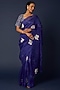 Featuring a cobalt blue saree in organza base with embroidery. It is paired with a matching raw silk unstitched blouse having hand embroidery.