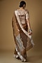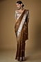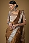 Featuring a golden brown handwoven saree in pure silk chanderi base with zari weave and boota detailing. It is paired with an unstitched blouse piece.