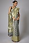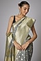 Featuring a grey banarasi saree in organza base with zari weaving. It is paired with an unstitched blouse piece. Style it with statement jewellery and heels for festive occasions.