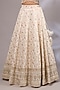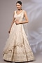 Featuring an ivory lehenga in dola silk base with an attached can-can. It is paired with a blouse and a net dupatta. Style it with polki earrings and block heels, perfect for weddings or sangeet ceremonies.