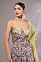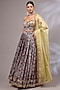 Featuring a multi-colored lehenga in modal silk base with ajrakh print and an attached can-can. It is paired with a blouse and a tissue silk dupatta. Style it with statement earrings and block heels, perfect for weddings or sangeet ceremonies.