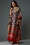 Featuring a multi-colored kaftan in modal silk base with tissue border, print and hand embroidery.