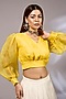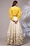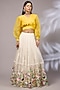 Featuring an off-white lehenga in organza base with hand paint and an attached can-can. It is paired with an organza yellow top. Style it with polki earrings and block heels, perfect for weddings or sangeet ceremonies.