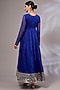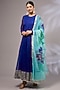Featuring a royal blue anarkali in organza base. It is paired with pants and a dupatta having hand paint and hand embroidery. Style it with statement earrings and block heels, perfect for festive occasions or weddings.
