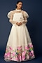 Featuring a white lehenga in silk organza base with floral hand painting. It is paired with a matching blouse.