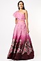 Featuring a wine and pink hand painted lehenga in organza base. It is paired with an one shoulder top. Accentuate this lehenga set with statement jewellery and heels for any wedding or engagement ceremony.