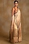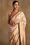 Featuring a beige handwoven banarasi kadhwa saree in silk brocade base with bootas, paisley motifs and a floral border, including an attached blouse piece. Accentuate with statement jewellery and heels for a wedding or festive occasion.