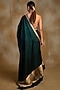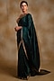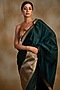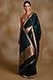 Featuring a deep green handwoven banarasi saree in silk mashru base with handcrafted gold brocade geometrical border and kadhwa on pallu, including an attached blouse piece. Accentuate with statement jewellery and heels for a wedding or festive occasion.
