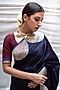 Featuring a navy blue saree in mashroo silk brocade base with scalloped kadua border and meenakari work including an attached blouse piece. This contains only one piece.