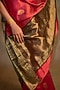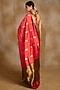 Featuring a red handwoven saree in silk chanderi base with gold naksha geometric and floral handcrafted border, including an attached blouse piece. Accentuate with statement jewellery and heels for a wedding or festive occasion.