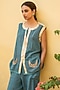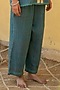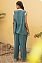 Featuring a teal blue top in organic cotton base with handcrafted sequins and upcycled patch work. It is paired with matching pants.