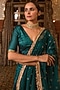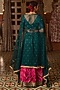 Featuring a teal lehenga in chanderi silk base with patchwork. It is paired with a blouse and a hand-embroidered tulle dupatta. Accentuate this designer lehenga set with statement jewellery and heels for a wedding or engagement ceremony.