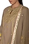 Featuring a dark beige anarkali in silk base with thread and dabka embroidery. It is paired with a matching off white gharara having gota work and dupatta in organza base.