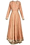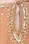 Featuring a dark bronze long kurta in silk base with sequins, dori and resham embroidery. It is paired with matching embroidered dupatta and double layer lehenga skirt.