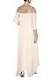 Featuring an off white asymmetric kalidar kurta in georgette base with pleats and tube work, pearls and sequins embroidery. It is paired with matching churidar pants in lycra base and dupatta in net base.