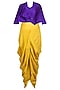 Purple Wrapped Cape with Mustard Dhoti Pants