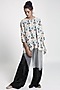 Featuring an ivory tunic in crepe and organza base with print. It is paired with contrasting black palazzo pants.