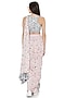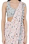 Featuring a pink and green saree in art crepe base with marble print, fabric tassels, and rib detailing. It is paired with a blouse having embroidery. Accentuate it with statement jewellery and heels for weddings or festive occasions.
