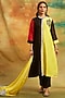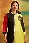 Featuring a yellow and black asymmetric kurta in chanderi silk base with thread embroidery. It is paired with modal silk pants and a dupatta. Style it with dangler earrings and heels for any occasion.
