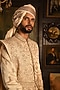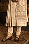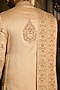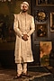 Beige Silk Zardosi Textured Embroidered Sherwani Set
