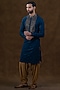 Featuring a blue kurta in art silk base with kasab dori and zardosi embroidery. It is paired with salwar and an embroidered dupatta. Accentuate it with kolhapuris or embroidered juttis for an elegant yet easy-going look, perfect for pooja ceremonies, pre-wedding functions or festive gatherings.