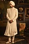 Featuring an ivory sherwani in silk base with dori, pearl and zardosi embroidery, including motifs detailing. It is paired with a pleated anarkali kurta, churidar pants, an embroidered dupatta and a belt. Accentuate it with handcrafted juttis and layered pearls for a refined, royal finish, ideal for wedding ceremonies or grand festive celebrations.
