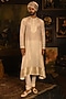Light Beige Silk Swarovski Embellished Sherwani Set