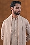 Featuring a rose gold kurta in art silk base with kasab dori and zardosi embroidery. It is paired with ivory salwar and an embroidered dupatta. Accentuate it with kolhapuris or embroidered juttis for an elegant yet easy-going look, perfect for pooja ceremonies, pre-wedding functions or festive gatherings.
