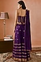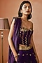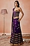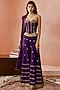 Featuring a baigani corset in silk base with coin work and embellishment. It is paired with sharara pants having embroidery and silk organza dupatta. Accentuate it with statement earrings and heels for weddings.