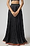 Featuring a black jacket in satin silk base with print and embroidery. It is paired with a bralette and a skirt. Accentuate it with statement earrings and heels for a festive occasion.