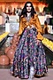 Punit Balana features a Black Skirt Set that captivates with its elegance. The eye-catching skirt is crafted in satin silk with print. It is paired with a mustard silk top having ruffle hand embellishment. Style this designer set with oversized polki earrings and embroidered juttis for a blend of youthful charm and timeless elegance. Perfect for haldi soirees, destination weddings and high-energy festive nights.