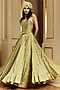 Punit Balana presents a mesmerizing dry heena green draped corset in satin silk base with coin embellishment and print. It is paired with a skirt. Style this set with metallic heels, statement earrings and soft curls for a modern-meets-traditional look. Perfect for cocktail functions, fusion weddings, or festive soirees.
