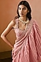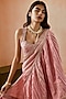 Featuring a dusty pink draped saree in banarasi tissue silk base with marodi work and embellishment. It is paired with an embroidered strappy blouse. Accentuate statement earrings and heels for a wedding or sangeet ceremony.