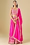 Featuring a gulabi gulaal bustier in silk base with mirror and marodi embroidery. It is paired with sharara pants and an organza silk dupatta. Accentuate it with statement earrings, a clutch and block heels for weddings or a sangeet ceremony.