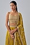 Featuring a heena green lehenga in chanderi silk base with marodri and gota embroidery. It is paired with an embroidered blouse and a jaal embroidered dupatta. Pair it with antique gold jewellery, a hand-painted potli bag, and embellished heels for a wedding, sangeet or engagement ceremony.