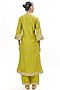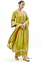 Featuring a heena green choga kurta in pure silk base with bell sleeves and marodi embroidery. It is paired with pants and an organza silk dupatta. Accentuate it with kundan polki jewellery and heels for festive occasions or mehendi ceremony.