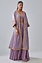 Featuring a lilac lehenga in banarasi tissue base with marodri and applique embroidery. It is paired with an embroidered blouse and a jacket. Pair it with antique gold jewellery, a hand-painted potli bag, and embellished heels for a wedding, sangeet or engagement ceremony.