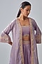 Lilac Banarasi Tissue Applique Embroidered Jacket Lehenga Set
