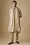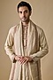 Featuring a gold kurta in chanderi silk base. It is paired with satin silk churidar pants and an organza dupatta. Style it with a pair of mojaris for a festive occasion, wedding or engagement ceremony, exuding charm and elegance.