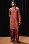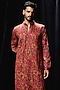 Featuring a surkh laal kurta in satin silk base with coin and resham work. It is paired with pants. Style it with pair of loafers and a watch for a traditional look, Perfect attire for a festive occasion or sangeet ceremony.
