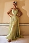 Mint Satin Silk Embroidered Tiered Maxi Dress